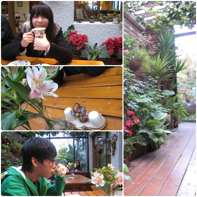 下午4點多的下午茶,在滿是花草的溫室裡,喝著熱奶茶吃著手工蛋榚,很有悠閒的氛圍!