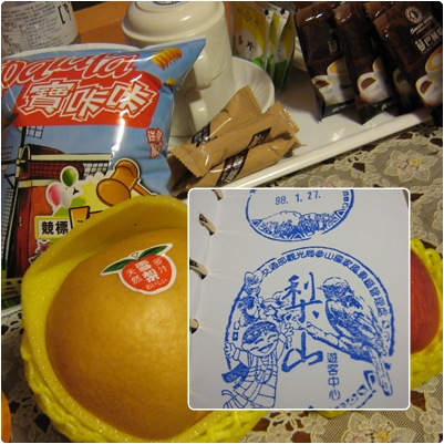在7-11買了一些餅乾當零食,還切了顆白天到梨山買的大雪梨,又甜又多汁。